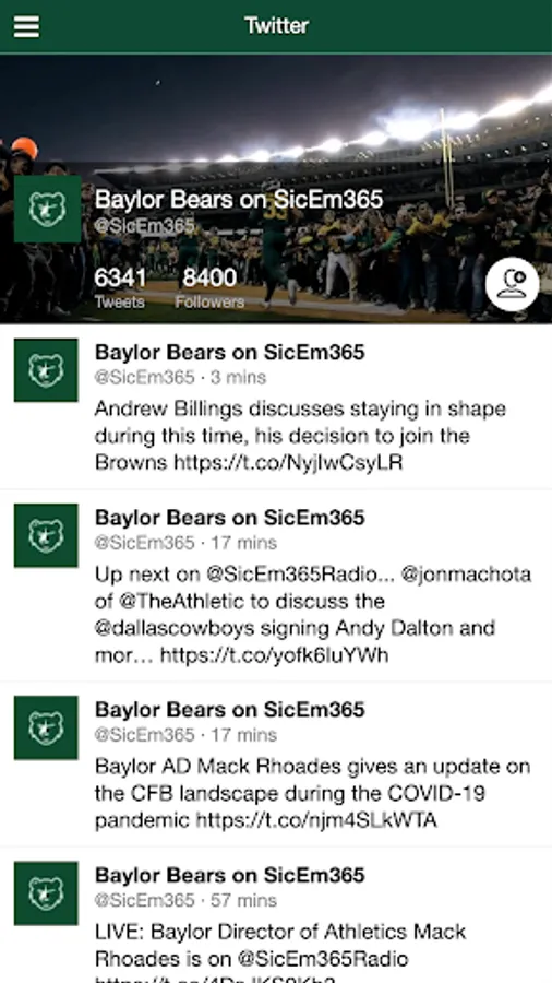 Keep up with the latest surrounding Baylor Athletics through this mobile application powered by SicEm365.com including a daily radio show streamed live through the app.
