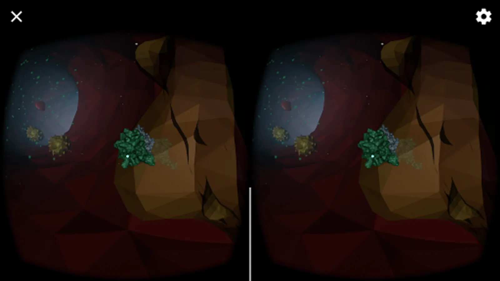 MoleculE 2 VR is a Virtual Reality app for phones requiring gyroscope and a VR headset like Google Cardboard. For a better experience use headphones and play standing or seated on a swivel chair to enjoy a 360 degree experience.