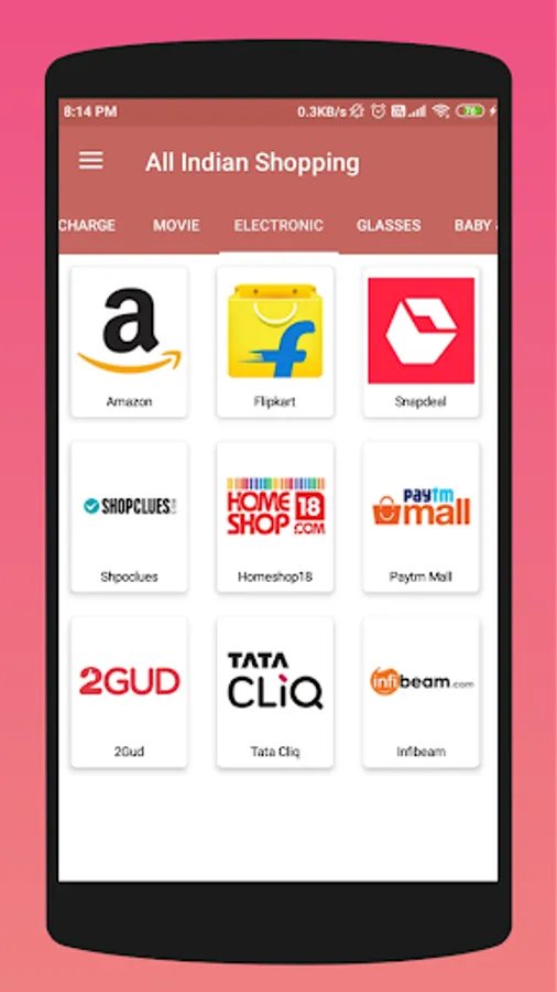 All Indian Shopping App is Collection of 100+ online shopping apps. Some of the major online shopping sites like Amazon, Flipkart, limeroad, Snapdeal, Paytm, Paytmmall, Shopclues, Jabong, Myntra, Ajio, Limeroad, Firstcry, Patanjali, Zivame, Tatacliq and many more...