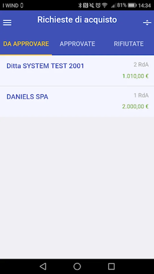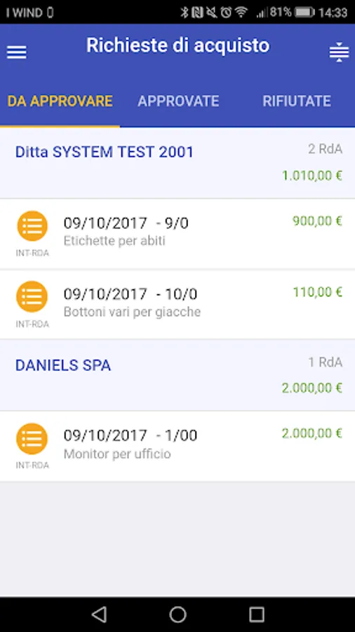 Optimized processes for obtaining approvals of documents "purchasing requirements" (RDA).