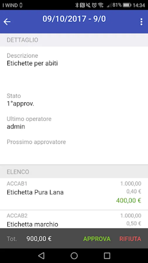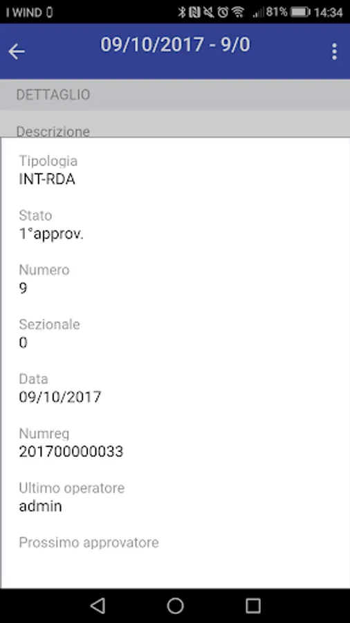 The application allows the approval or rejection of a document submitted to the authorization flow.