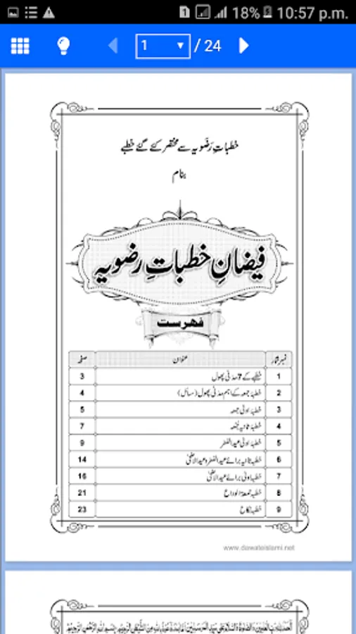 This application contains a book of Alahazrat Imam Ahmed Raza, name is Faizan e Khutbat e Razawiyya. This book is one of the Most Important Books about learning basic Islami Khutbate Jumma and Eideen by Imam e Ahl e Sunnat Ahmad Raza Khan.