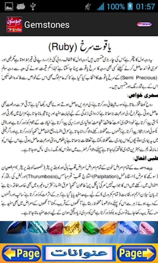 Gemstones in urdu is a complete gemstones application based on a book written in Urdu Language related to Gems & Stones with their medical effects