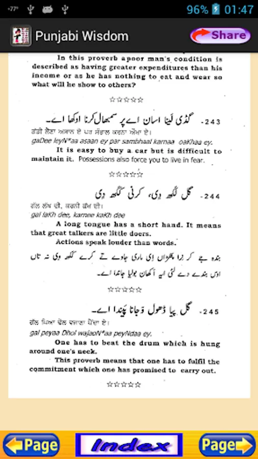 There are thousands of proverbs in every living language of the world and especially in those languages which have long oral traditions. Our Punjabi language is one of those languages of the world which is full of short sayings on various subjects.
