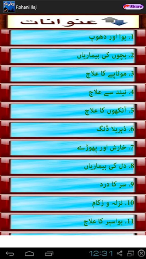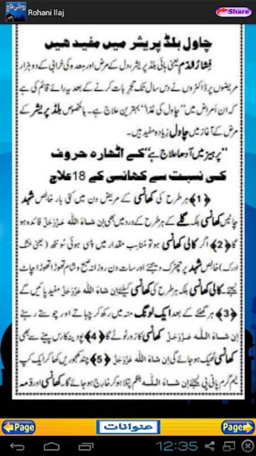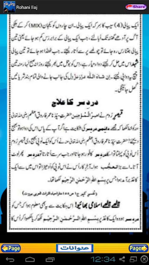 Rohani Ilaj aur Dua (Cure with prayer Spiritually) is a useful app to find the easy way to get cure of common diseases, there are the medical prescription, spiritual advices and other possible cure of different diseases are mentioned in it. Most Importantly this app has a package of Dua (Prayer) package which can be recited on the corresponding occasion..