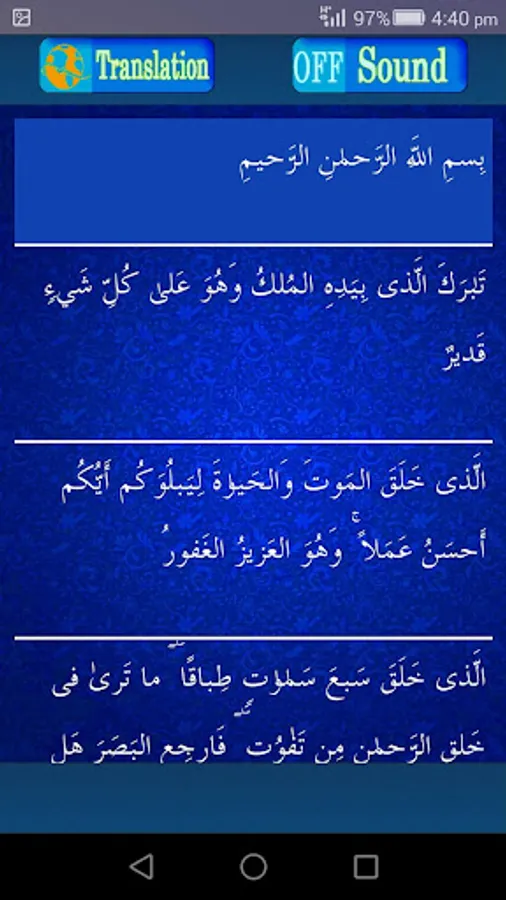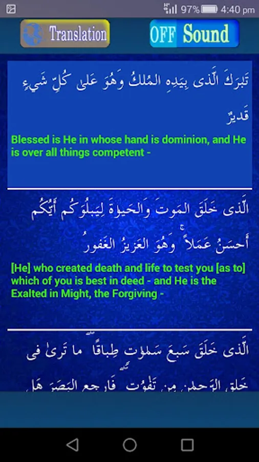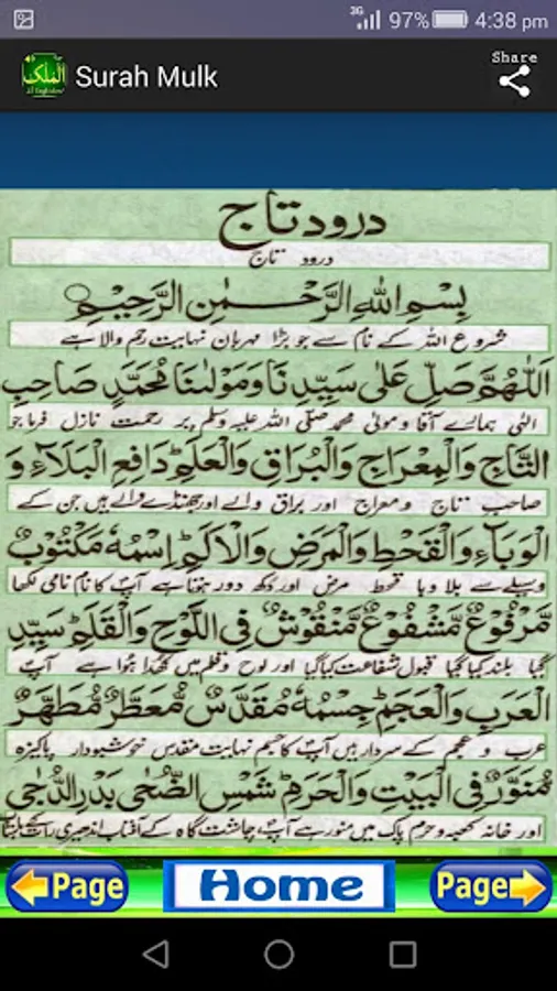 Includes Surah Mulk with Audio and Multi-Language Translation. Application Including complete Darood E Taj and free Islamic Radio FM channel. It is a complete Package to earn the Blessing of ALLAH ALMIGHTY.