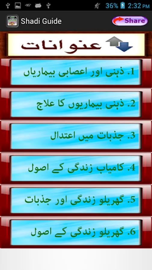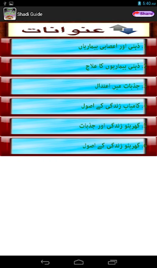 This is a Urdu Application that gives its Users 17 rules of a successful marriage. This application is based on an Islamic point of view. It is for everyone who is either about to get married, or is already married. It will answer many of your questions and help you solve many problems in your married life.