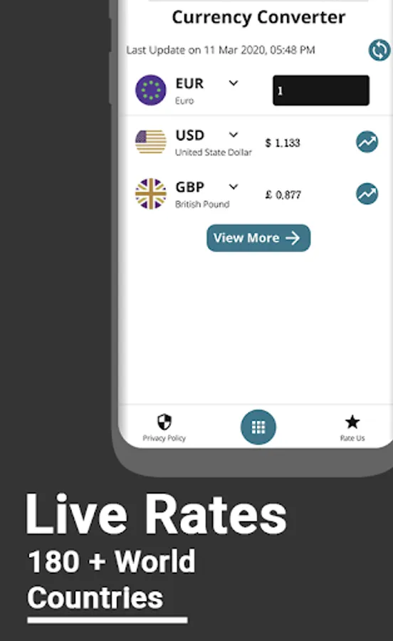 Covert Currency for Free with this new money exchange calculator app for android. Facility of all currency conversion or multiple currencies at the same time. This Currency Converter Forex Exchange Rate Calculator App will give you live and accurate exchange rates of all over the world currency to update yourself. Convert US Dollar to Pound, Euro or any Currency for Free. This Money Converter and currency calculator is here to show all currency change history and strength from the required time. Live Exchange Rates and all currency converter app features is here with Tiny MBs pack with money calculation and Forex Updated rates for free.