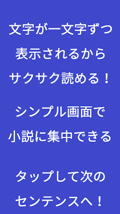 It is an application that reads novels that are out of copyright. Characters are displayed one by one like the text of a game, and care is taken not to fill the smartphone screen with characters.