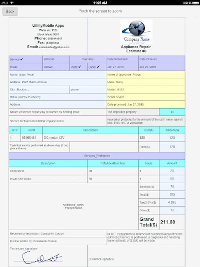 If you're a contractor who offers quality appliance repair/installation services, then you should also be thinking about using professional invoices and estimates forms. This application helps you create comprehensive, nicely-designed, and professional-looking Estimates and Invoices for your business.