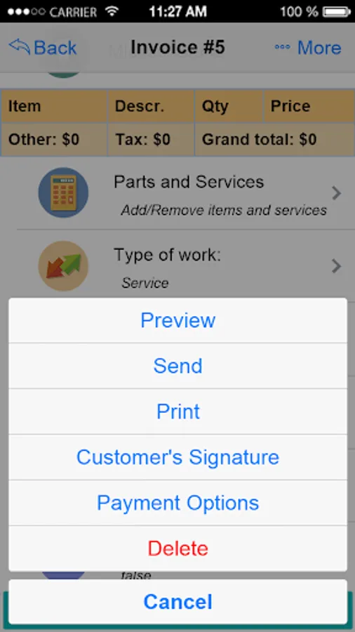 - Preview . See how the real invoice/estimate looks like before you send it to the client.