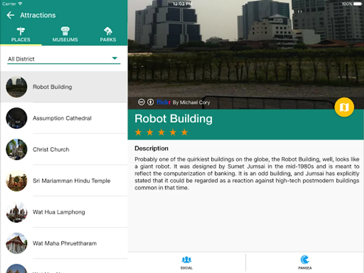 With detailed information of around 25 museums , 10 parks and 80 featured attractions along with 1000s of other Points of Interest carefully integrated with every single travel activity, Bangkok travel is power packed with utilities and information. From Facebook Check-Ins to local event information, offline map to intuitive Augmented Reality experience, we have brought most of the travel activities and application needs to one single app. Save precious travel time rather than switching between several apps and utilities!