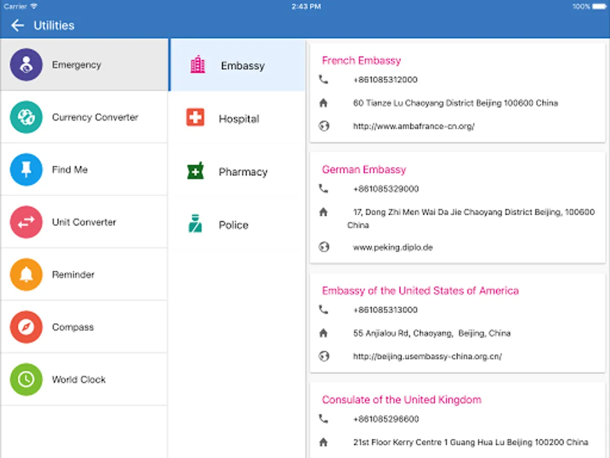 • Travel utilities like hotel booking, currency converter, weather forecast, world clocks, reminder, alarm and many more available within the app.