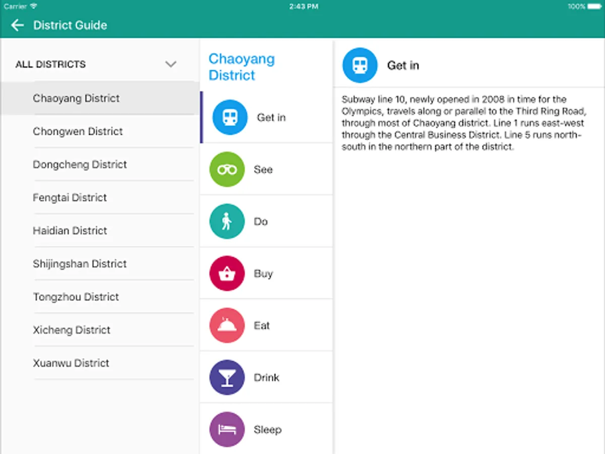 • Practical travel guide with detailed information like attractions, getting around for each district of Beijing City.