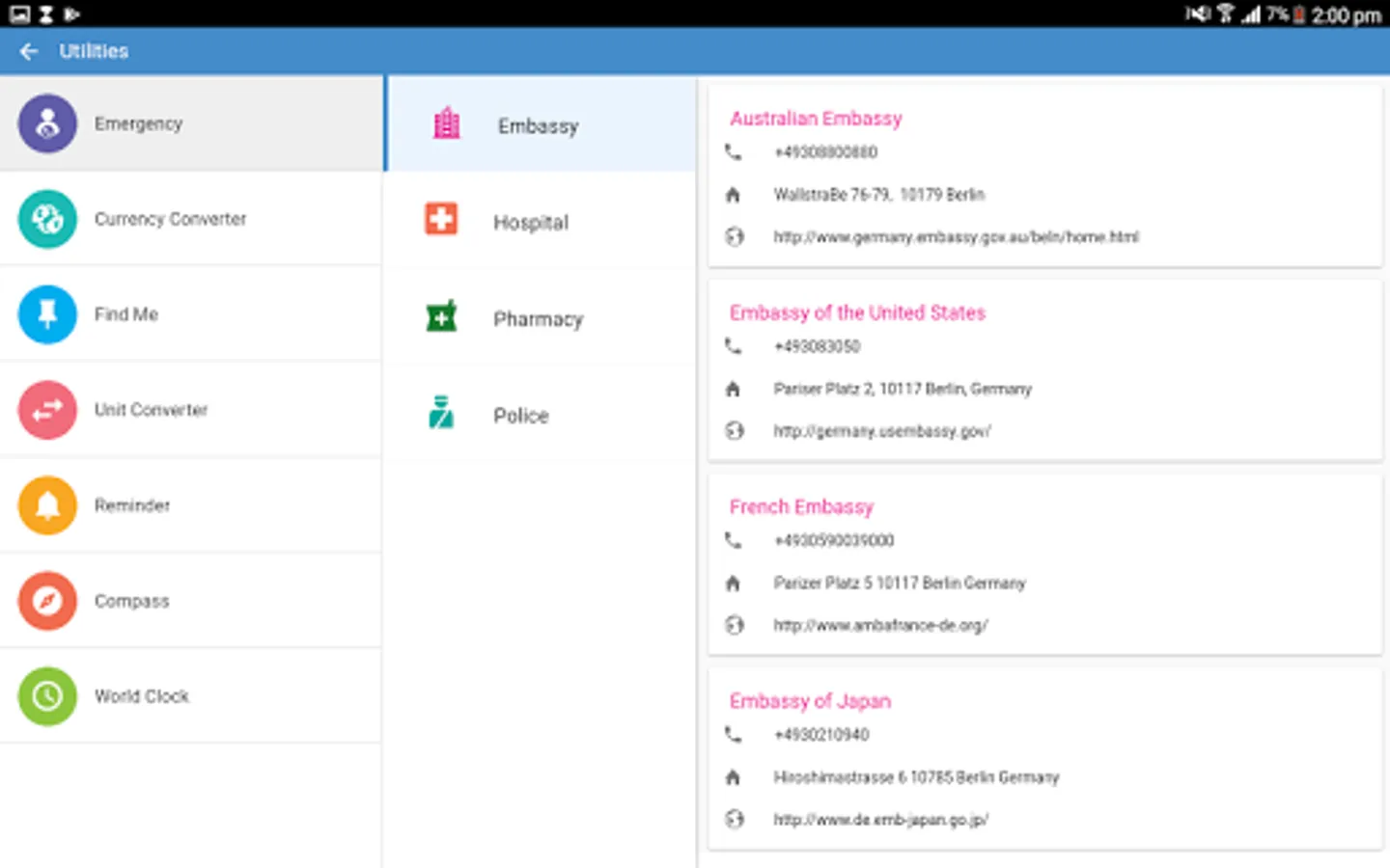 • Comprehensive set of utilities and tools that will help you plan your trip. Organize checklist, send postcards, bringing a collection of useful travel apps within a single app.