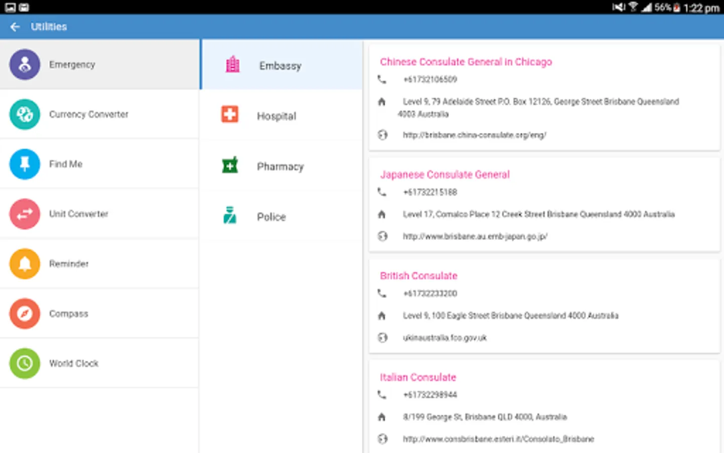 • Travel utilities like hotel booking, currency converter, weather forecast, world clocks, reminder, alarm and many more available within the app.