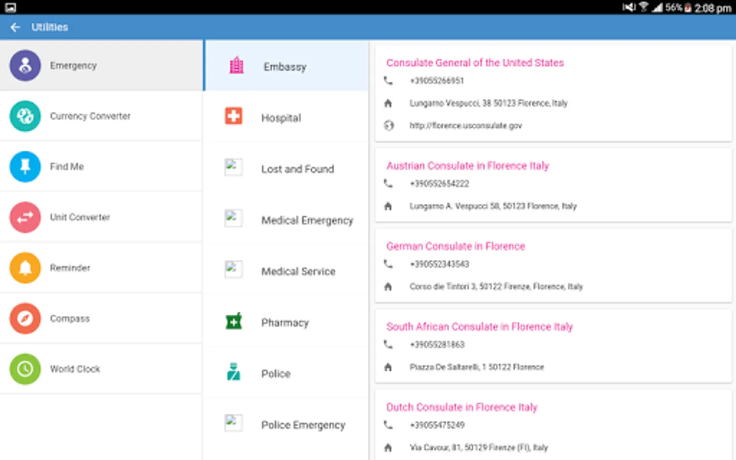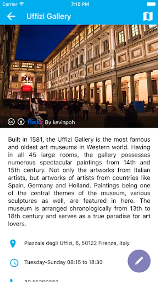 • Extremely detailed Florence offline map for no connectivity areas or internet availability (Connection required on first time use).