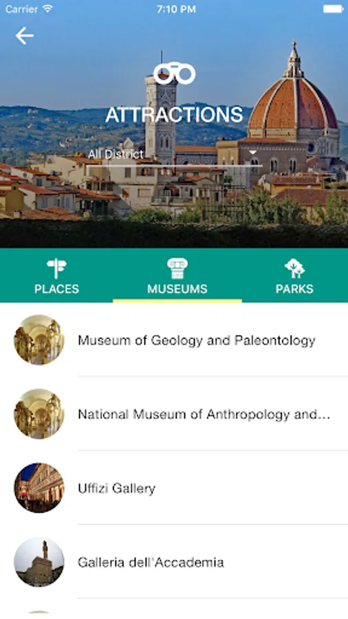 • Practical travel guide with detailed information like attractions, getting around for each district of Florence City.
