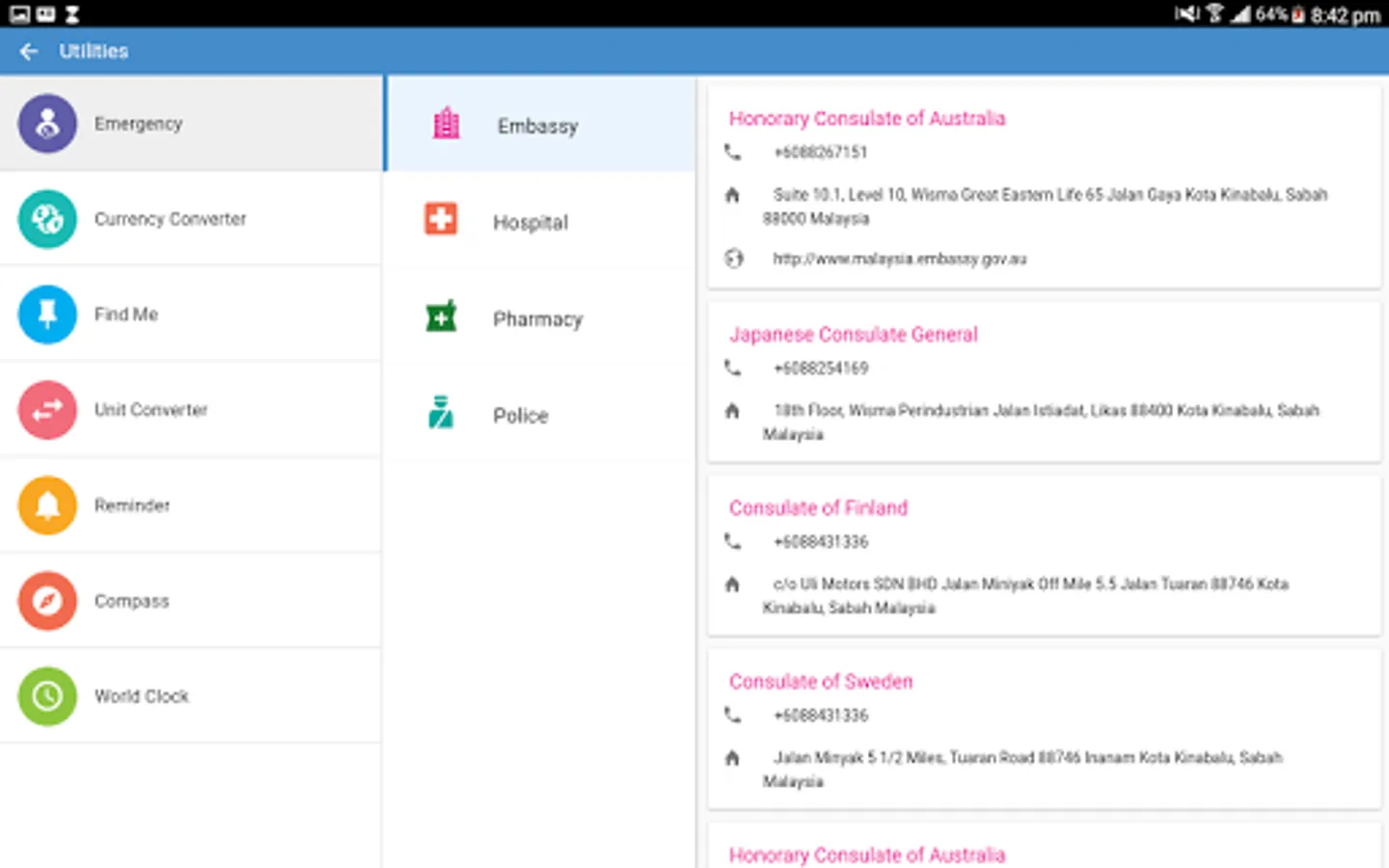 • Travel utilities like hotel booking, currency converter, weather forecast, world clocks, reminder, alarm and many more available within the app.