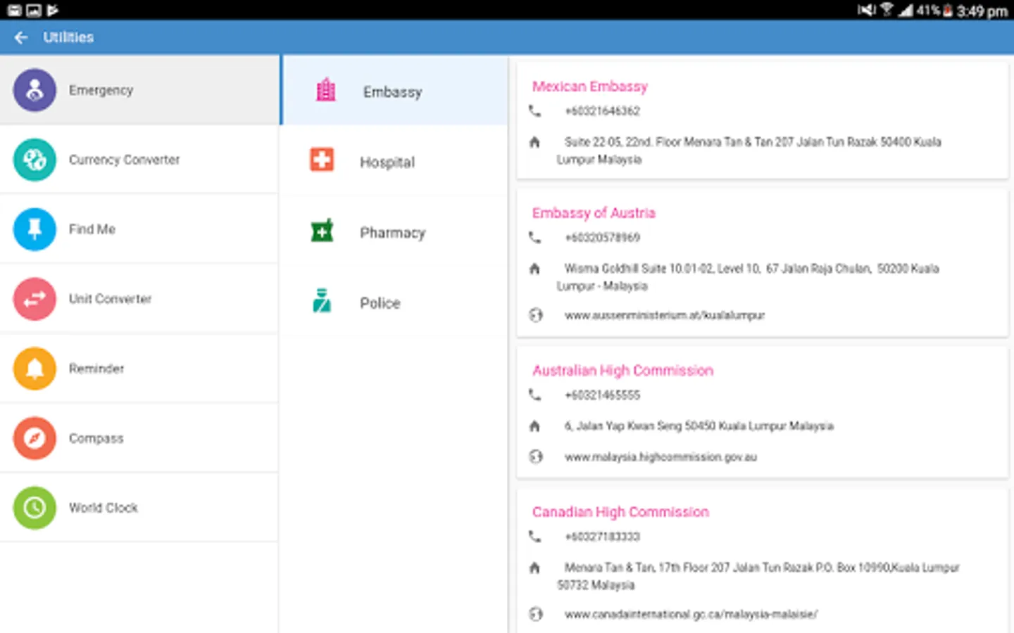 • Travel utilities like hotel booking, currency converter, weather forecast, world clocks, reminder, alarm and many more available within the app.