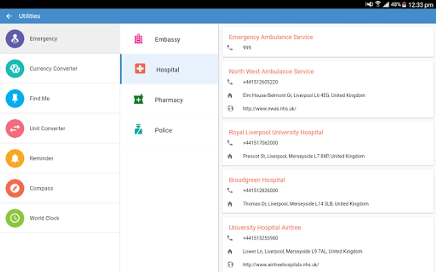 • Travel utilities like hotel booking, currency converter, weather forecast, world clocks, reminder, alarm and many more available within the app.