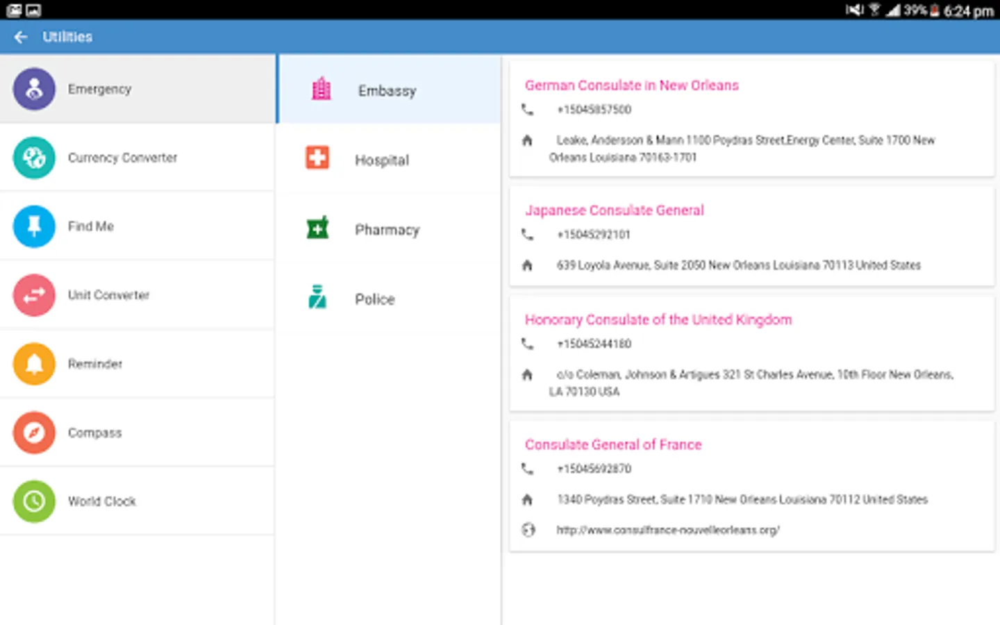 • Travel utilities like hotel booking, currency converter, weather forecast, world clocks, reminder, alarm and many more available within the app.