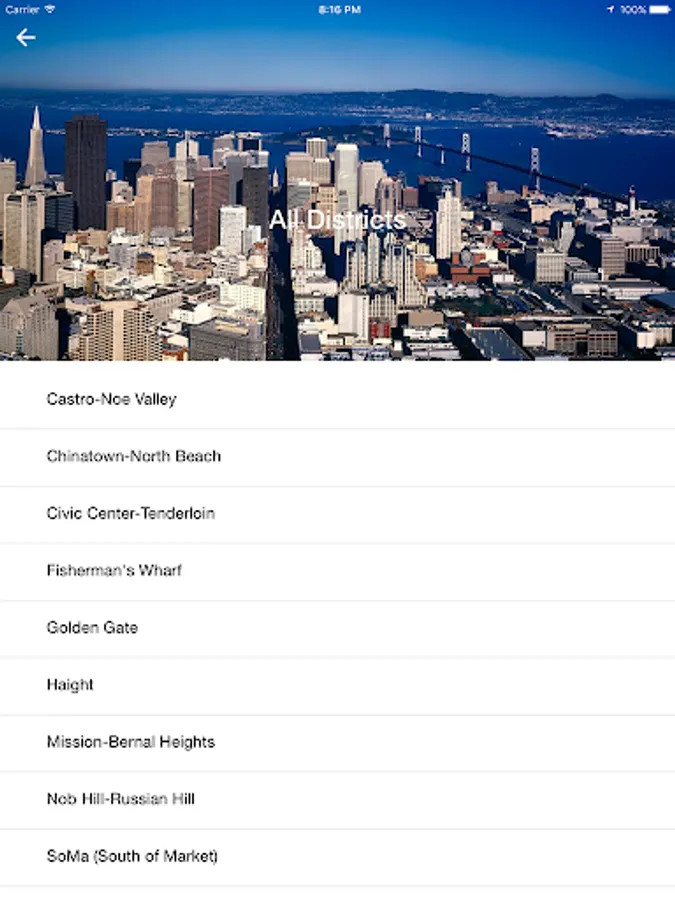 • Practical travel guide with detailed information like attractions, getting around for each district of San Francisco City.
