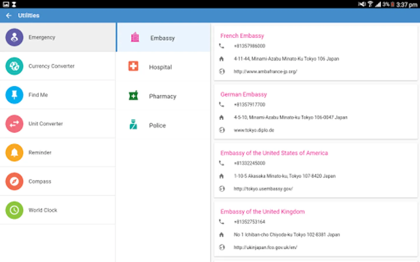 • Travel utilities like hotel booking, currency converter, weather forecast, world clocks, reminder, alarm and many more available within the app.