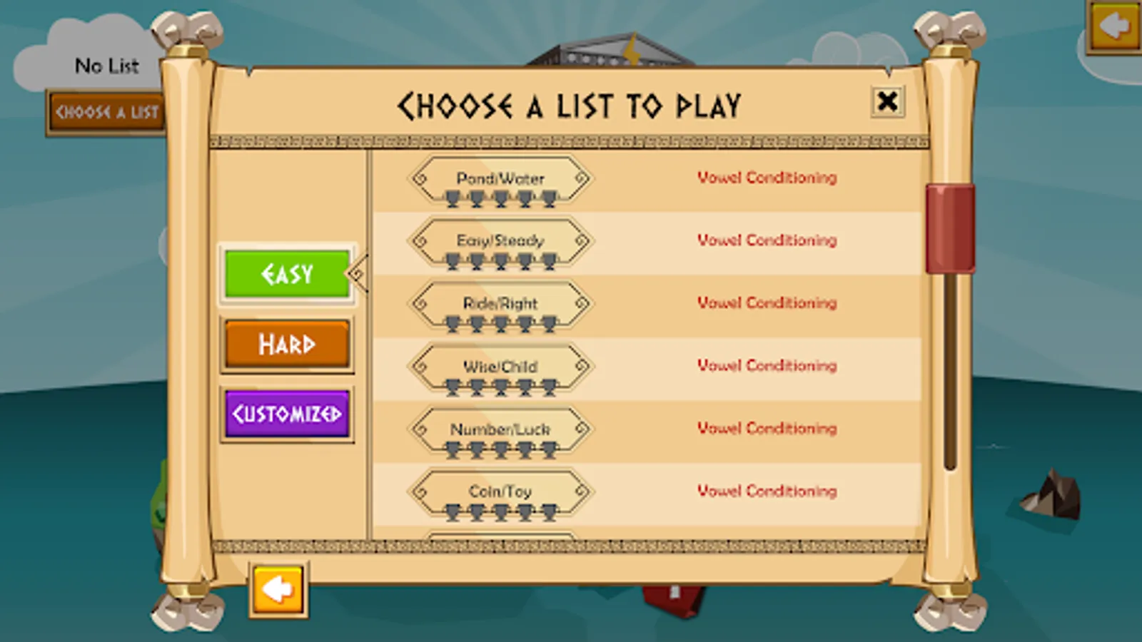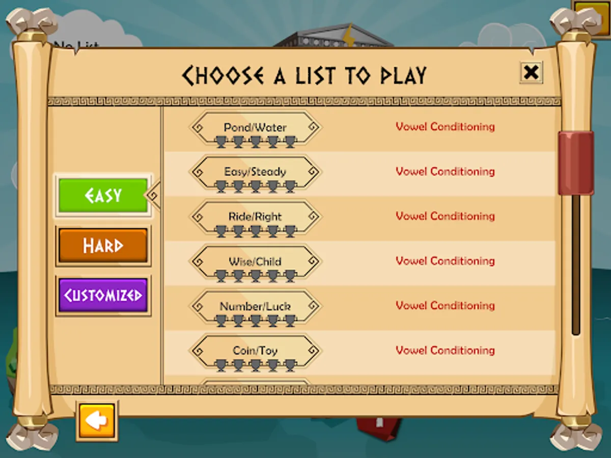 Words Without Worries also offers you the possibility of creating your own word lists or acquiring new lists in order to continue learning. The games are based on the following teaching methods: