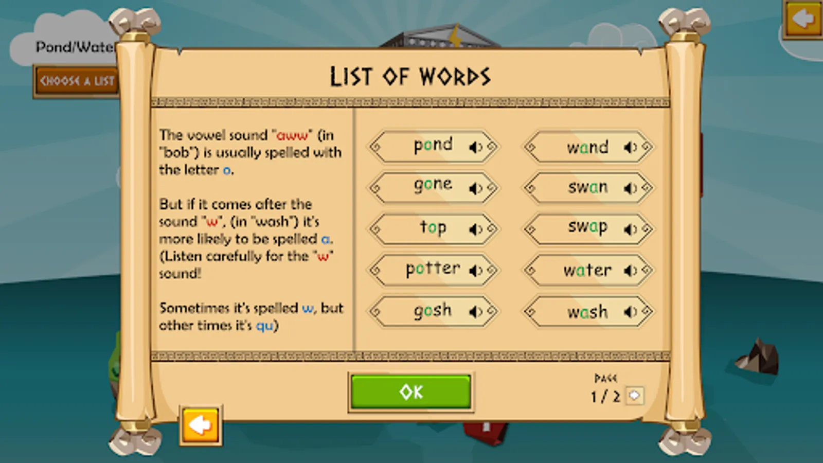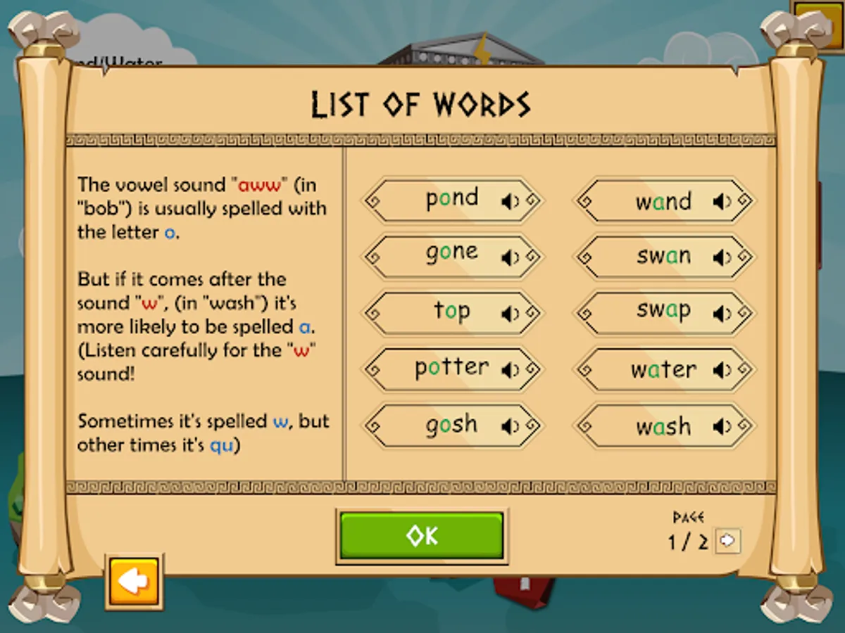 Words Without Worries makes learning fun by offering a bank of 400 words covering 40 spellings on 2 levels of difficulty. The 5 games offered will lead children to learn 10 words at a time by opposing 2 ways of spelling the same sound (5 words per spelling).