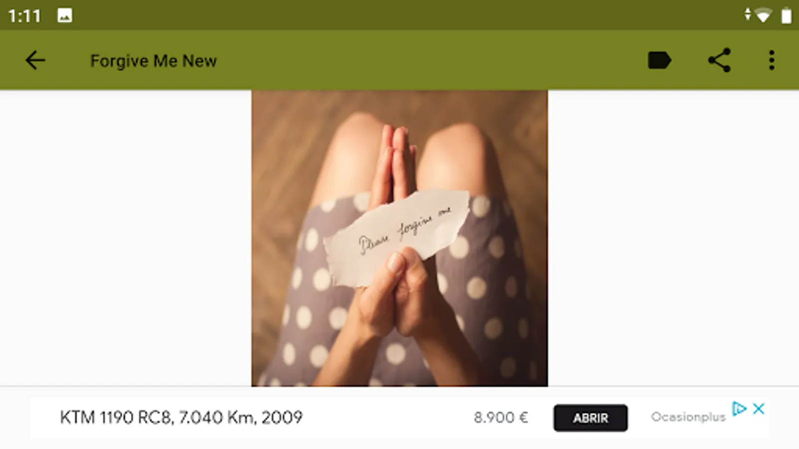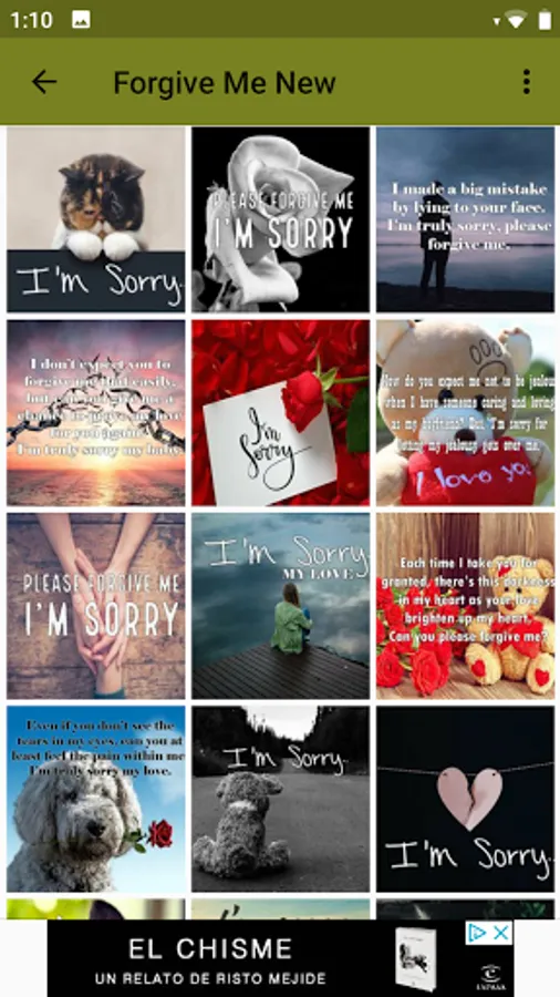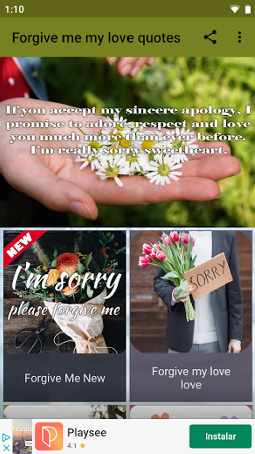 In a couple it is normal to have arguments but you have to know how to ask for forgiveness when we are wrong. In this app we offer you a large number of images with phrases to ask your partner for forgiveness because we know that misunderstandings are easy and asking for forgiveness is difficult. We want to help you ask for forgiveness with images full of words that are sometimes so difficult to say, with images full of feeling.