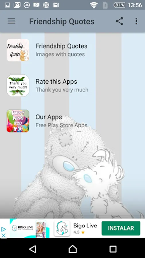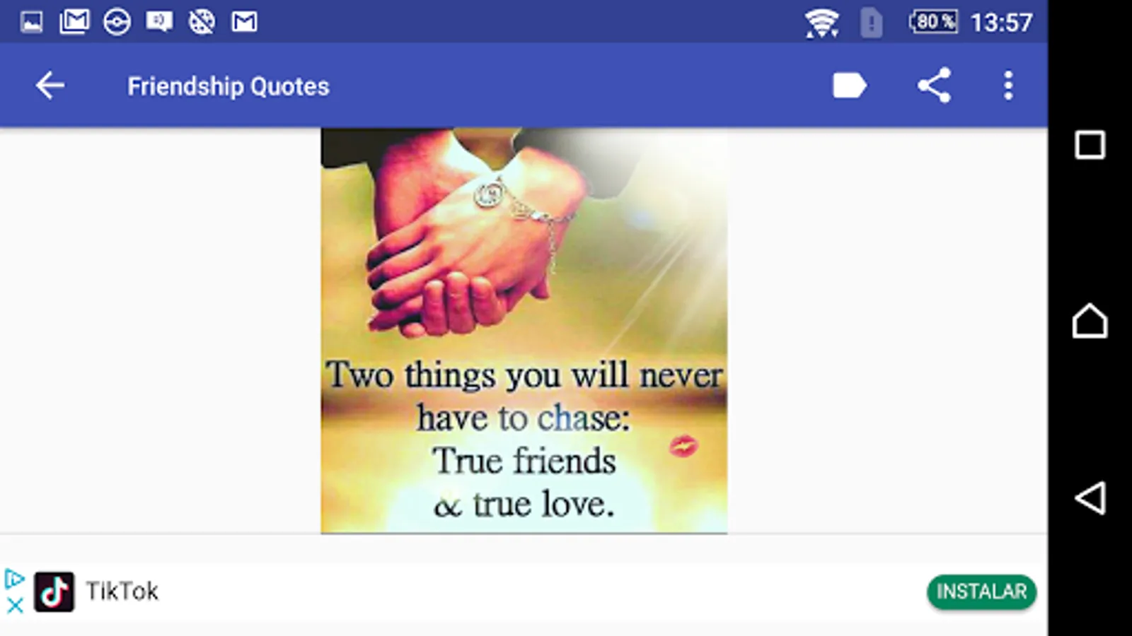 With this application you can share beautiful images with your friends and relatives to reaffirm your friendship and show that true friends are like brothers. The images are beautiful like the friendship that exists between two people. The love of friends is the same or more beautiful than that of a couple.