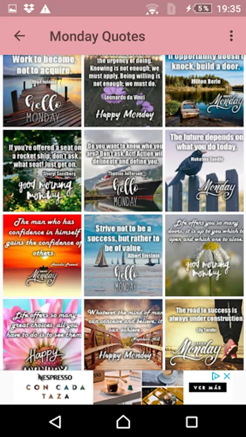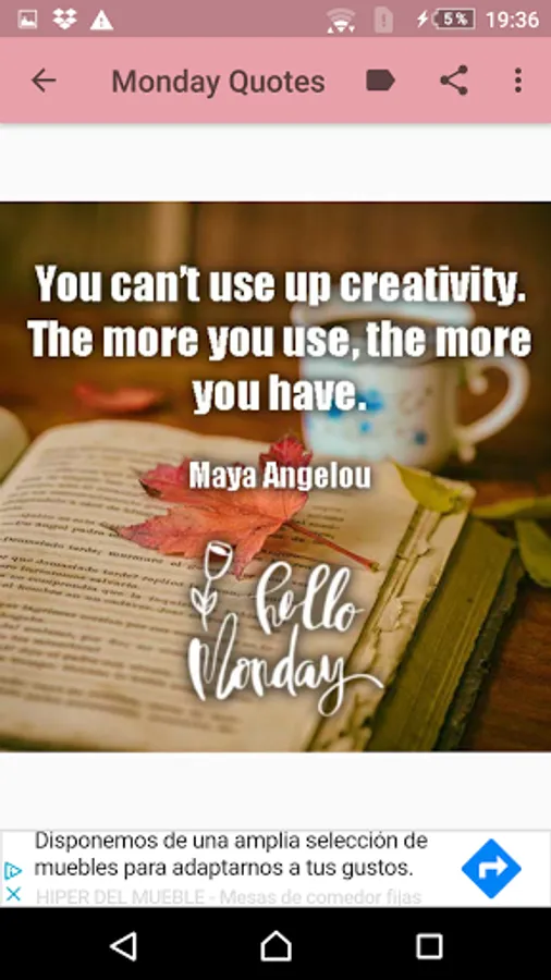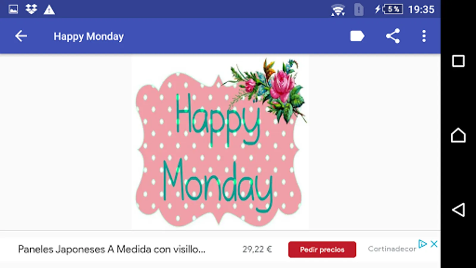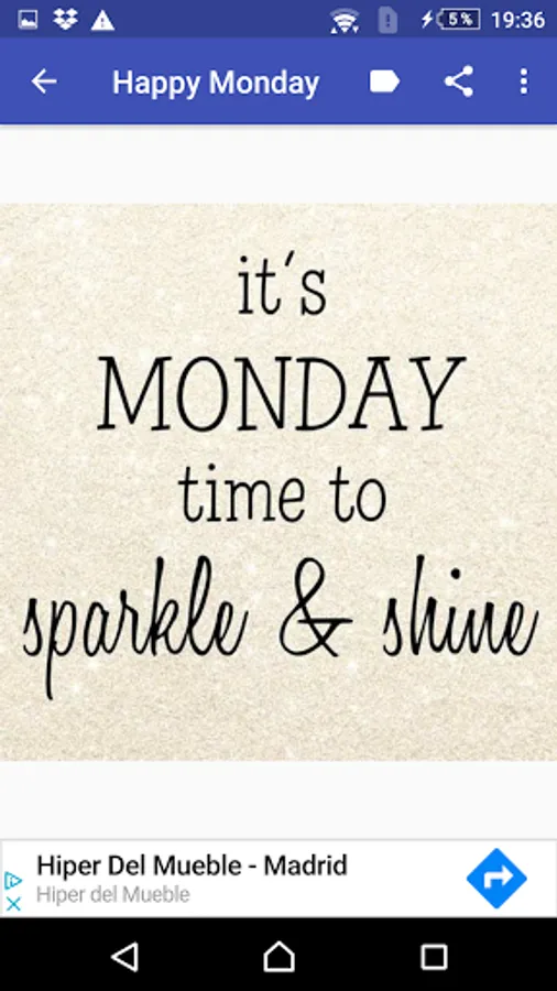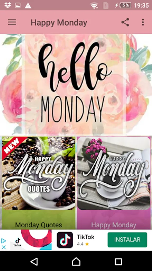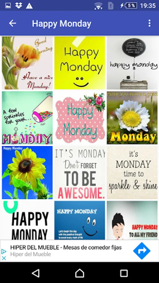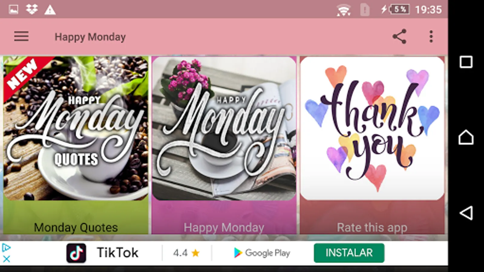 This app contains funny pictures, with phrases, great quality of happy Monday.