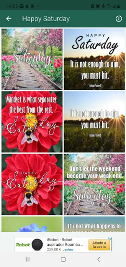 Say hello to all the people you love on Saturday. This application contains beautiful images, with dedications, with blessings from God, with Hello Day, for everyone. Make your loved ones smile and show them that you remember them day after day.