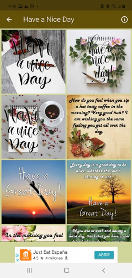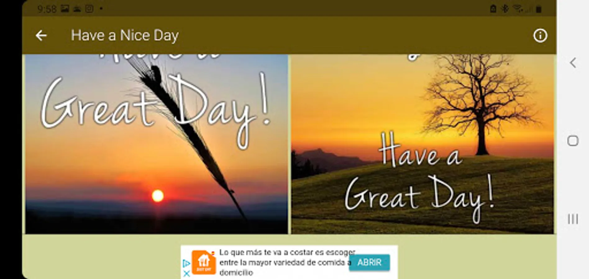 Are you looking for an app with which you can congratulate your loved ones on the day? Are you looking to surprise and brighten someone's gray day? If so, then this application is designed for you. Have a nice day is an application with which you can wish your loved ones have a nice and wonderful day. It is a perfect way to start the day with energy and good humor. There is nothing better than being happy to have better health and live each day with hope.