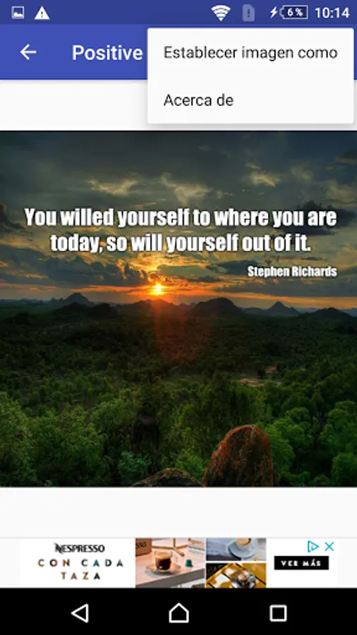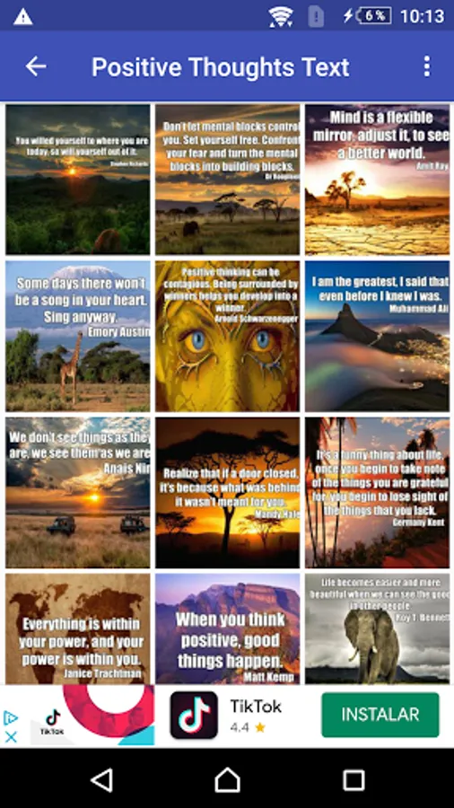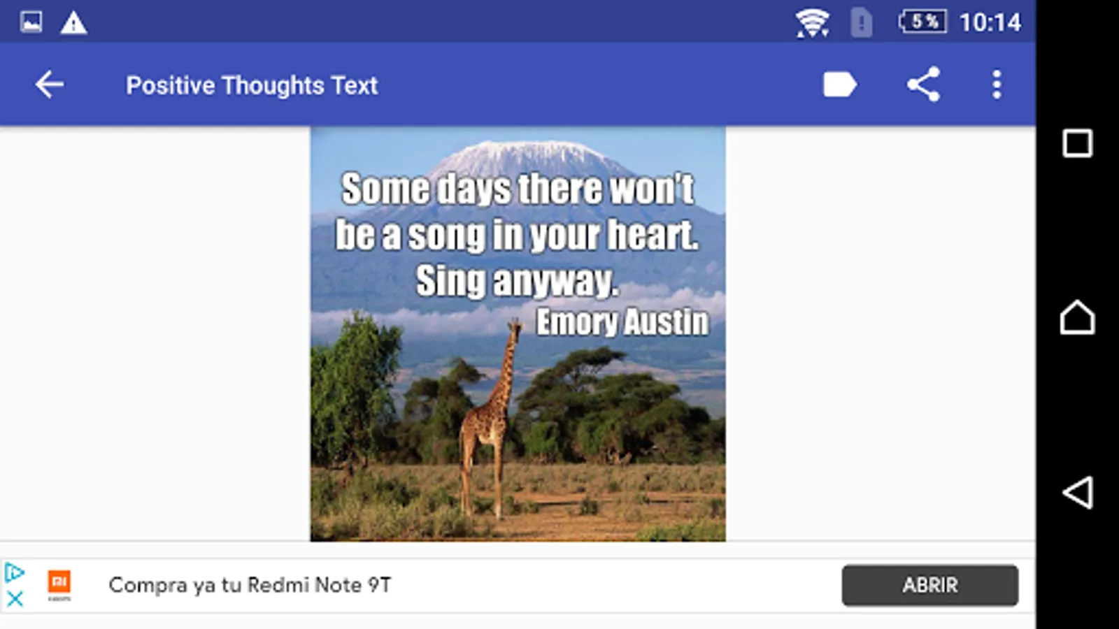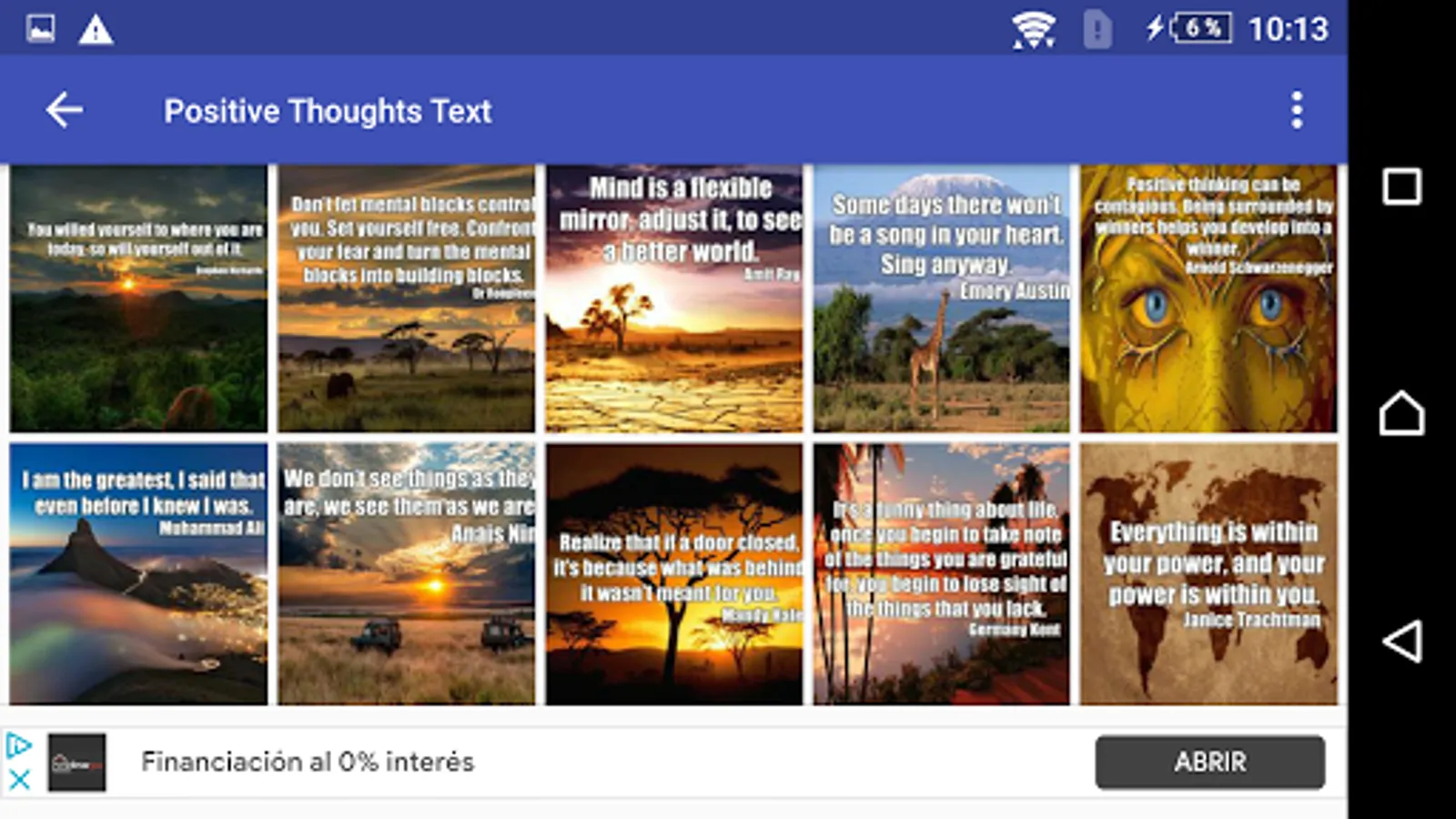 Are you looking for positive thoughts that brighten your day? Are you looking for a solution to your problems? Do you want to remember someone who can fight to get ahead always and with everything? Do you consider yourself a resilient person? Then downloading this app interests you. It is an application in which you can find images to remind you that you have to fight for what you want or to remind your friends and family. Positive thoughts for any day and time of the week.