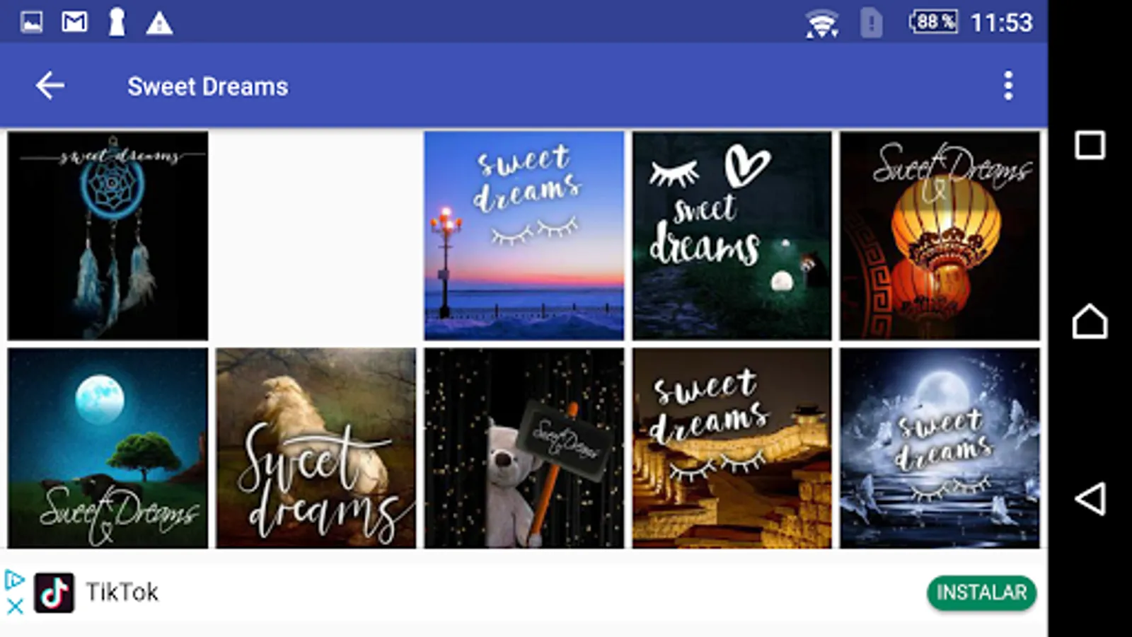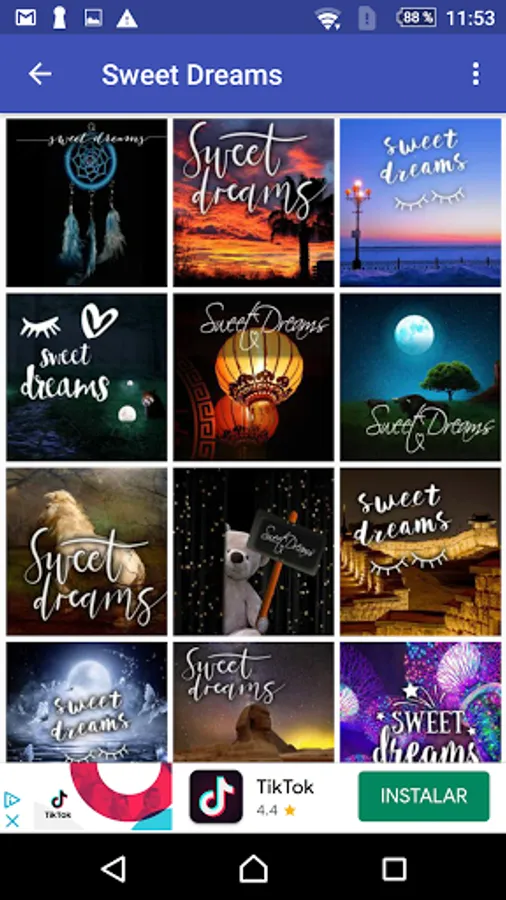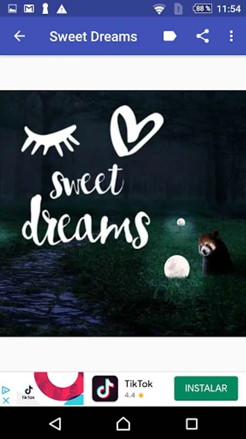 Sweet dreams is an application with which you can share beautiful photos on your social networks. It is a perfect app to send postcards to your friend or your love, it also serves to wish your parents and grandparents a happy night, or even your uncles. Family is a fundamental support and there is nothing better than remembering how much we appreciate them and we want them to have a nice night.