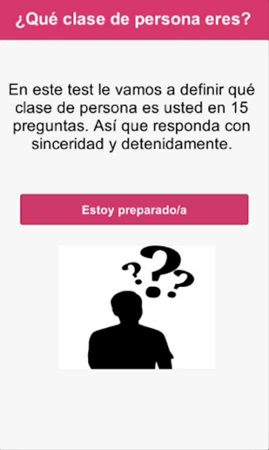Finally in this test we will evaluate what kind of person you are! Through a series of questions we can define different personalities and character types and know who you are.