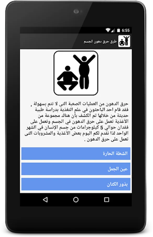 Simple and clear program helps you learn ways to burn body fat easily, a summary of recipes have been assembled in one place to help you get rid of excess weight and fat burning in the body practically fast through recipes and practical programs have been formulated after a study and a compilation of many sources.