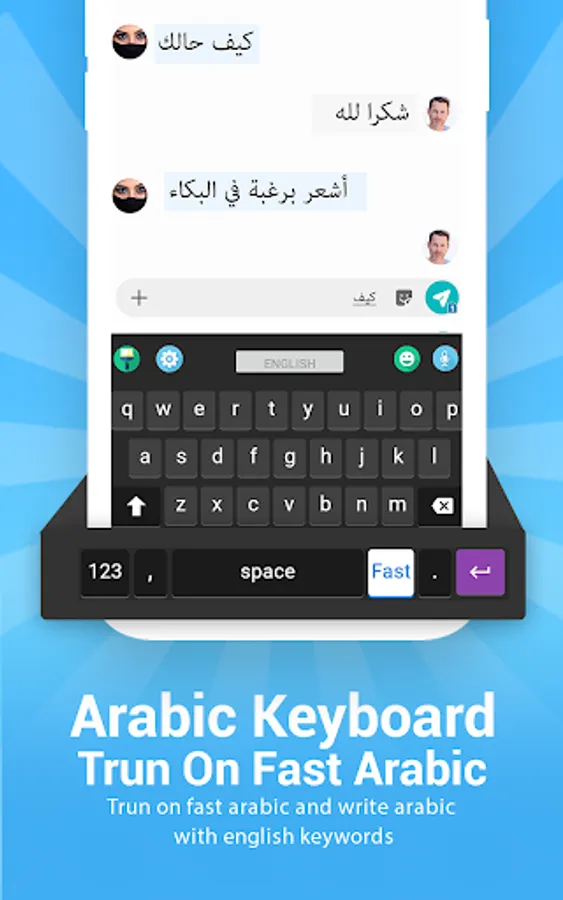 Typing Keyboard - Arabic Language Keyboard will help Android users to write and type the text SMS in the Arabic Language in Arabic text. Using the Arabic keyboard to send the Text SMS, Email, Share post on Social Media, Blog posting in the Arabic language.