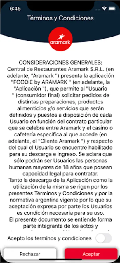 The “Foodie by Aramark” mobile application allows you to access a wide selection of food services that Aramark has enabled at your service point, where you can view the menu of the day and select your preference in advance from the available options. In addition, "Foodie by Aramark" allows you to make remote purchases of services so that you can collect your order directly at the Aramark point of service.