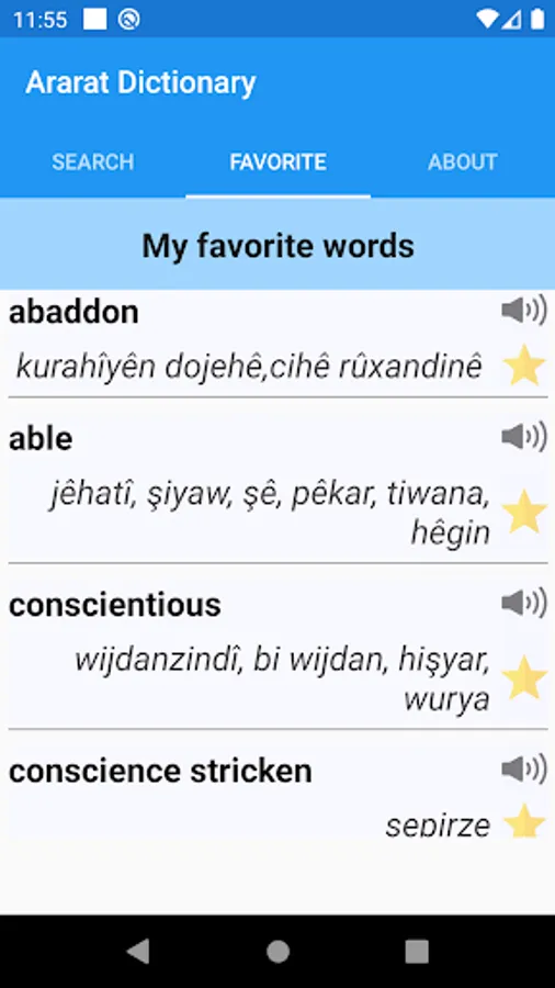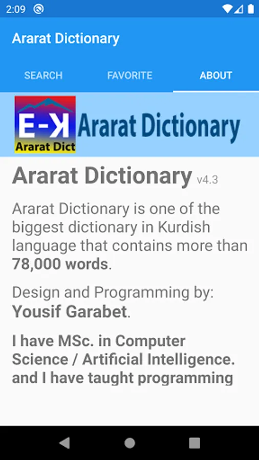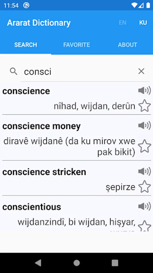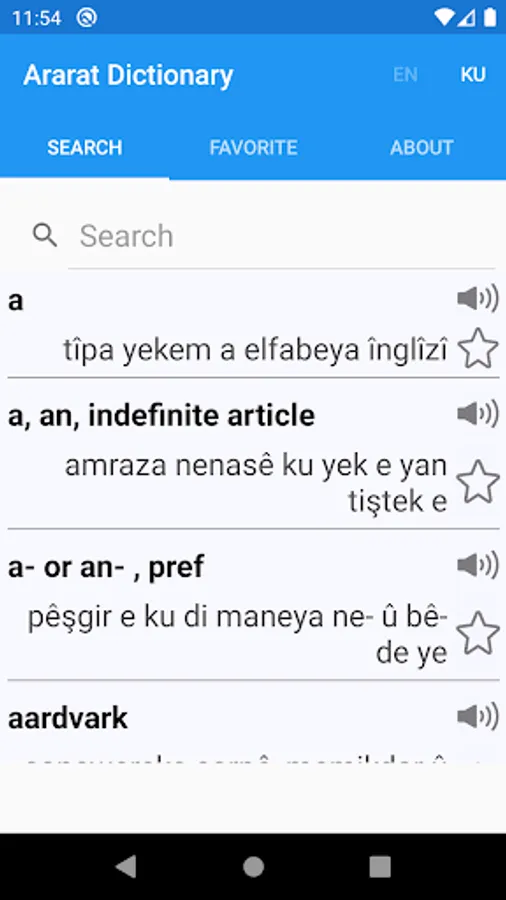 Ararat Dictionary is one of the fastest and biggest English - Kurdish Dictionary and vice versa you can search either in English or Kurdish in addition this app contains more than 78,000 words in English with 78, 000 in Kurdish too.