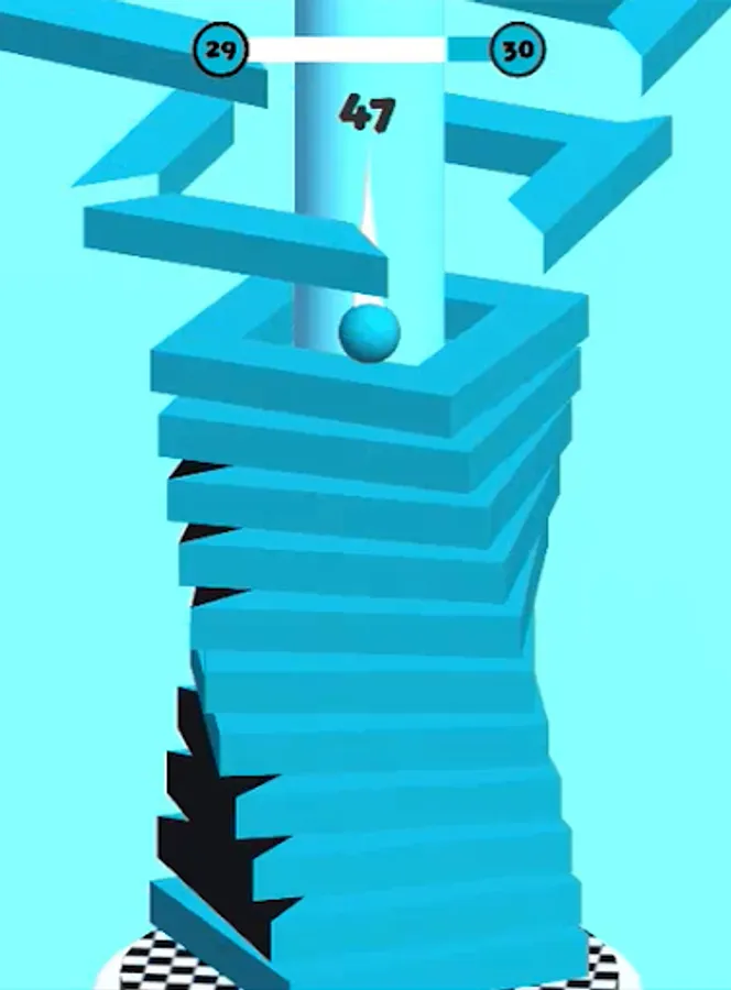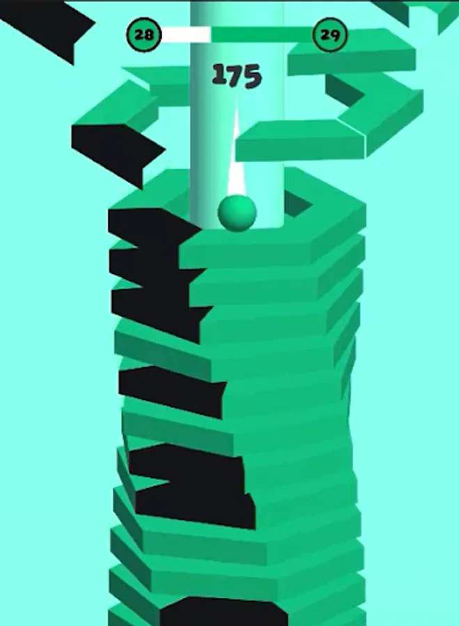 Press and hold on the screen and let the ball go down without touching the obstacles! Hold as long as possible to make combo and break the black blocks. Let the ball fall down from the helix stacks.