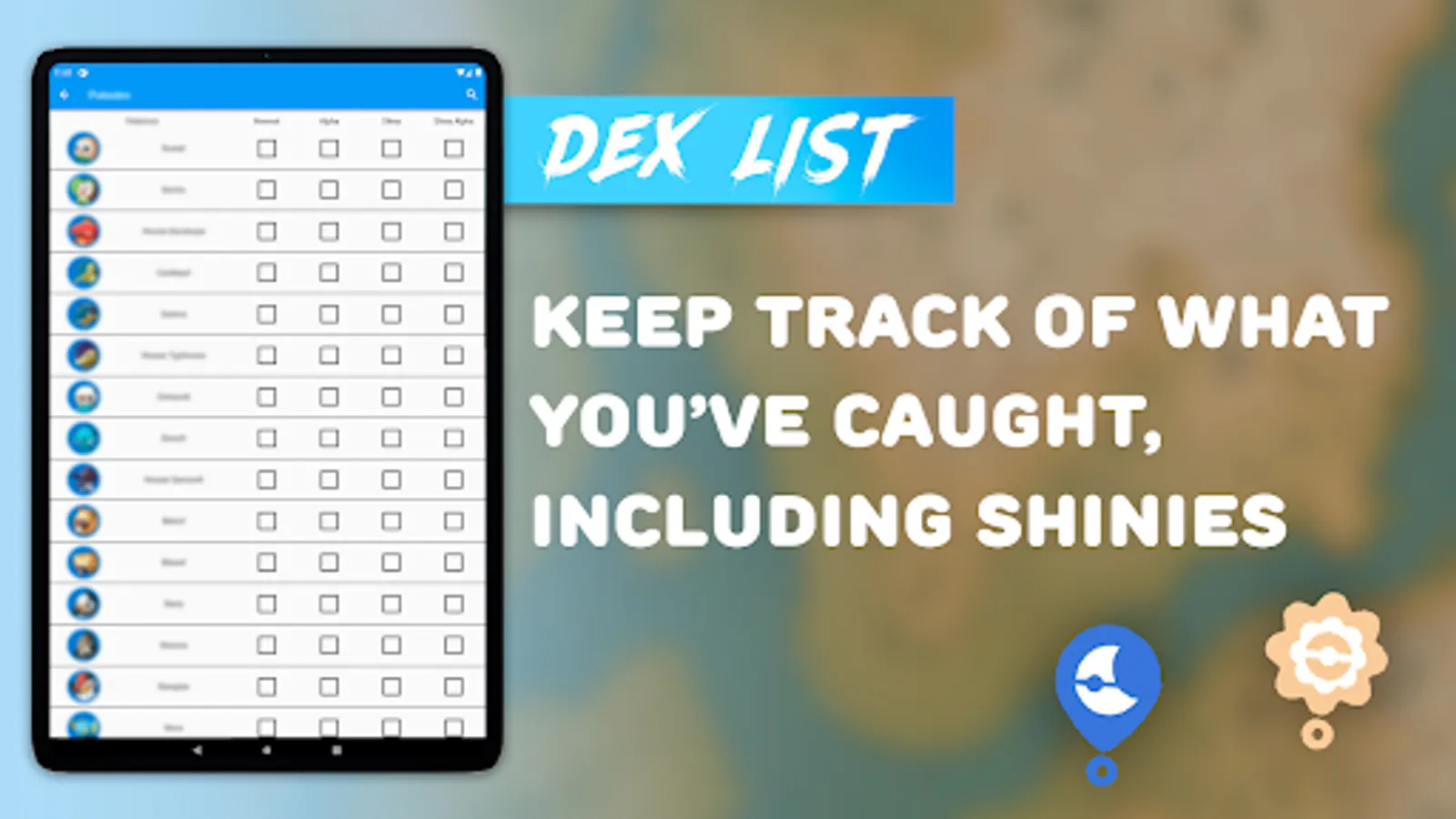 Dex List - Keep track of what you’ve caught, including Shinies!