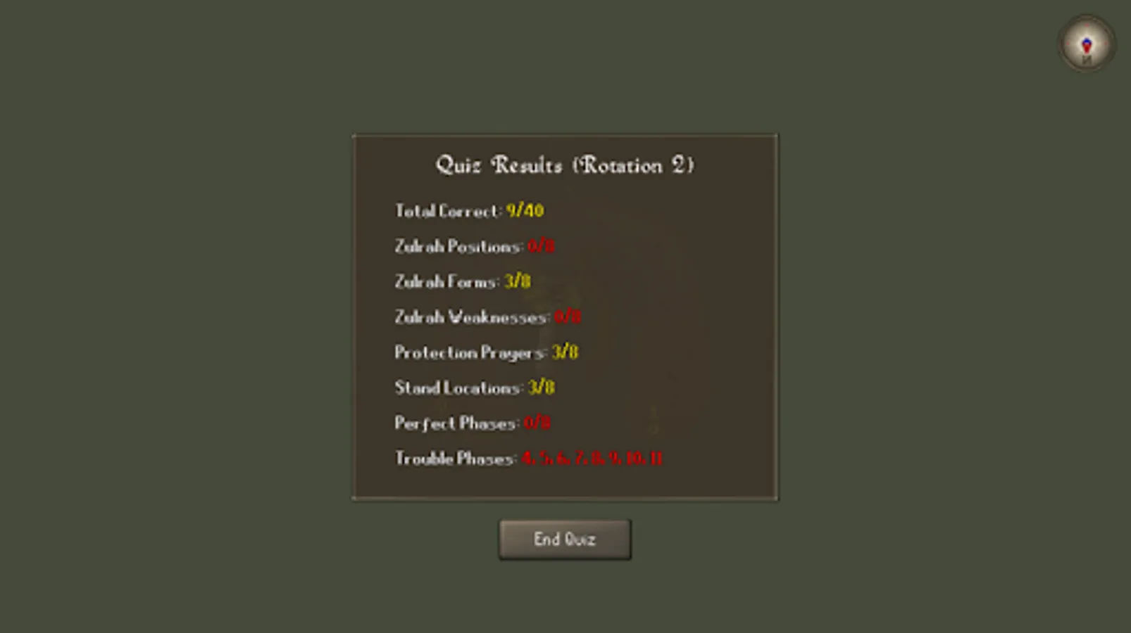 Quiz Mode - Answer multiple choice questions for each phase in the chosen rotation.