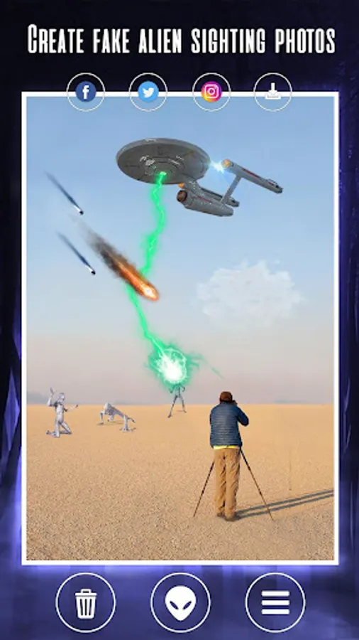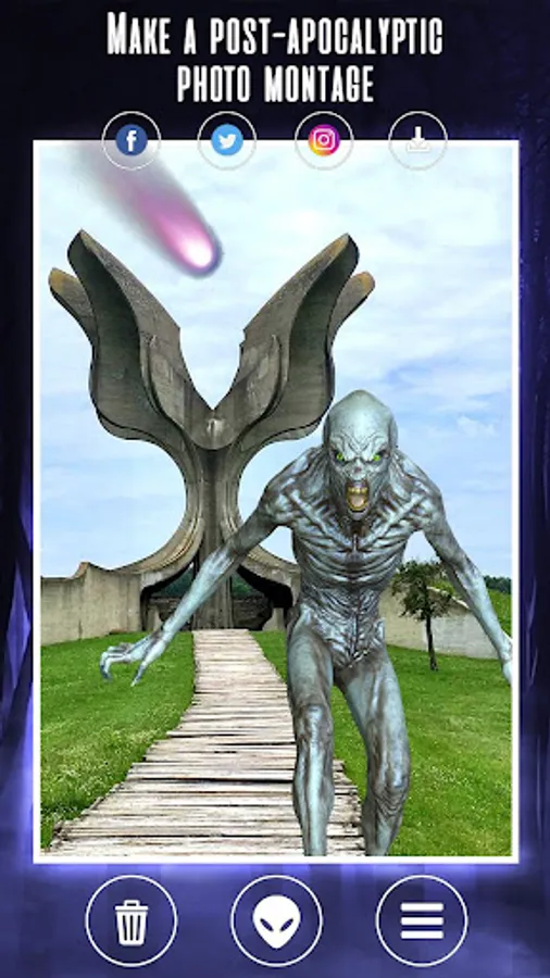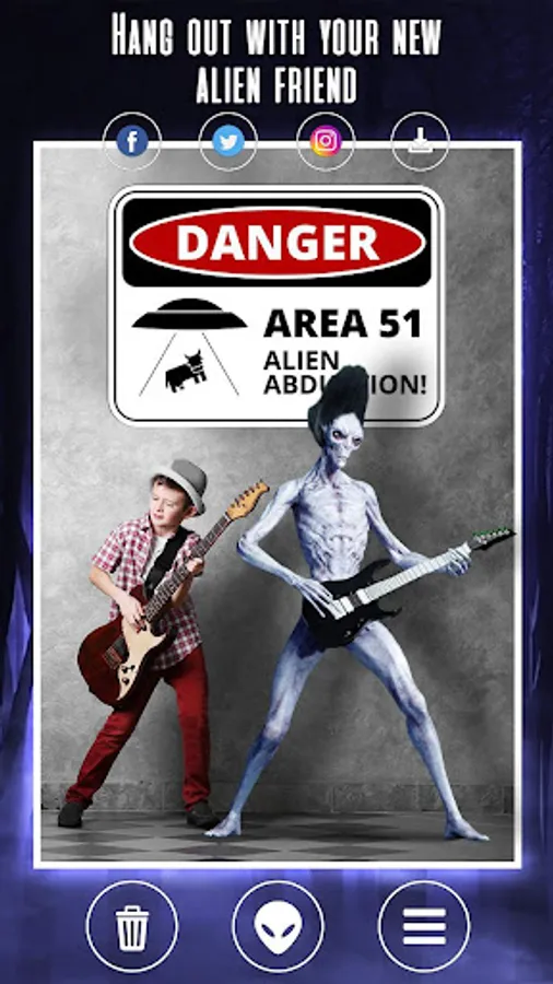 There are all kinds of aliens that this Area 51 Alien Stickers software provides for its customers completely free. From scary green aliens, a cute alien that you could keep as a pet, to good looking female aliens. With all the memes going around about 'Lets see them aliens' you have to come aboard the hype train and make memes as well, and with some help from this aliens photo editor with alien photo stickers it will be easy and fun. Use this alien photo camera do add both realistic aliens and fun fake looking scary alien photo stickers.