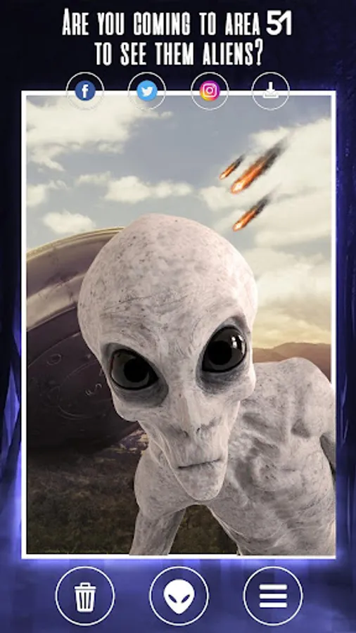 All jokes aside, don't go and storm area 51 because the security won't allow it. So, in order to avoid the area 51 terror, use this Area 51 Alien Stickers and alien photo app to make a photo montage instead. Whether you want to make things terrifying with this scary photo editor, or just create creepy photos filled with alien spaceship or alien ufo stickers, this alien camera has got you covered. No additional charges are required and there is no paid version for this spaceship photo editor. You get everything completely free so you can do with it whatever you please. Have fun and create your own area 51 scene so you always remember the day you stormed are 51 with your internet friends.