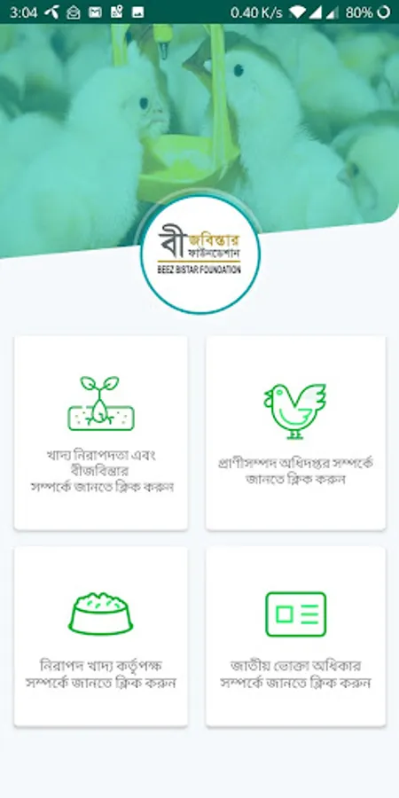 Beez Bistar Foundation implemented a project namely Food Safety Governance in Poultry Sectors under financial support from PROKAS, British Council from 2017 to till in Tangal Sadar,Delduar Upazila of Tangail and Kumarkhali Upazila of Kusthia. The aim of the Issue Based Project ( IBP) on Food Safety (FS) Info desk development is to disseminate food safety related messages among stakeholders( Poultry farmers, fed Dealers ,LBM actors, Govt Officials, Private sectors and Civil Societies) in the project areas. This App will act as continuous motivation and inspiration through read and see the food safety related message.