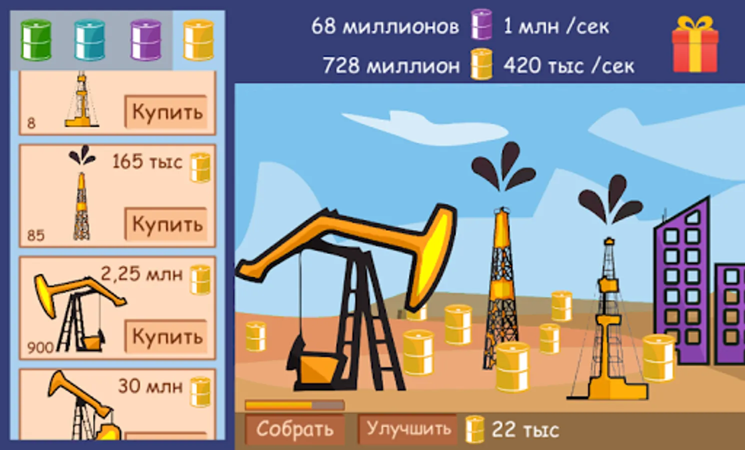 In the finals you will find the most valuable - gold oil. After the extraction of gold oil immediately appears gasoline, which turns into gold after combustion.