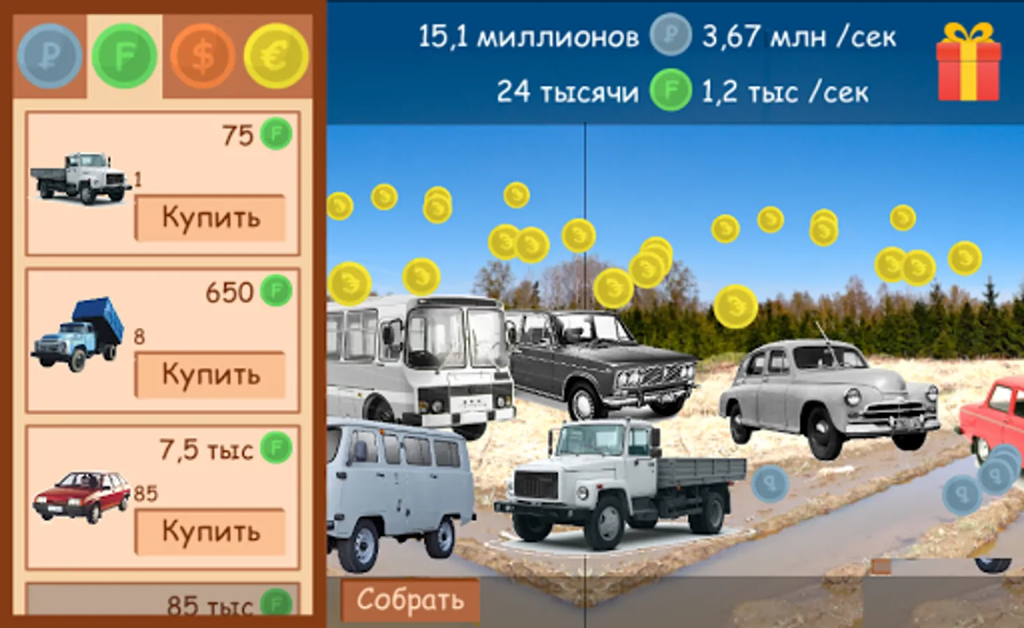 Your fleet can include a variety of transport: ordinary Lada, retro cars, Trucks for the transport of large goods, aircraft for emergency delivery and inspection of the space from a bird's-eye view.